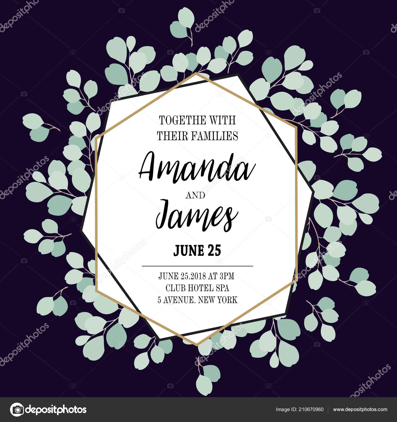 Wedding Invite Invitation Card Vector Floral Greenery Design Eucalyptus Lily Leaves Waxflower Natural Botanical Green Decorative Good Rhombus Fr Stock Vector Image Art Alamy